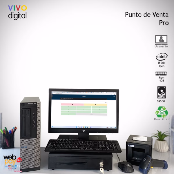 KIT Computador LENOVO THINKCENTRE M93p Mini | Renovado | Intel Core i5-4570T | 8GB Ram – Disco 240GB SSD | Monitor Usado 19″ VGA – Teclado y Mouse nuevo