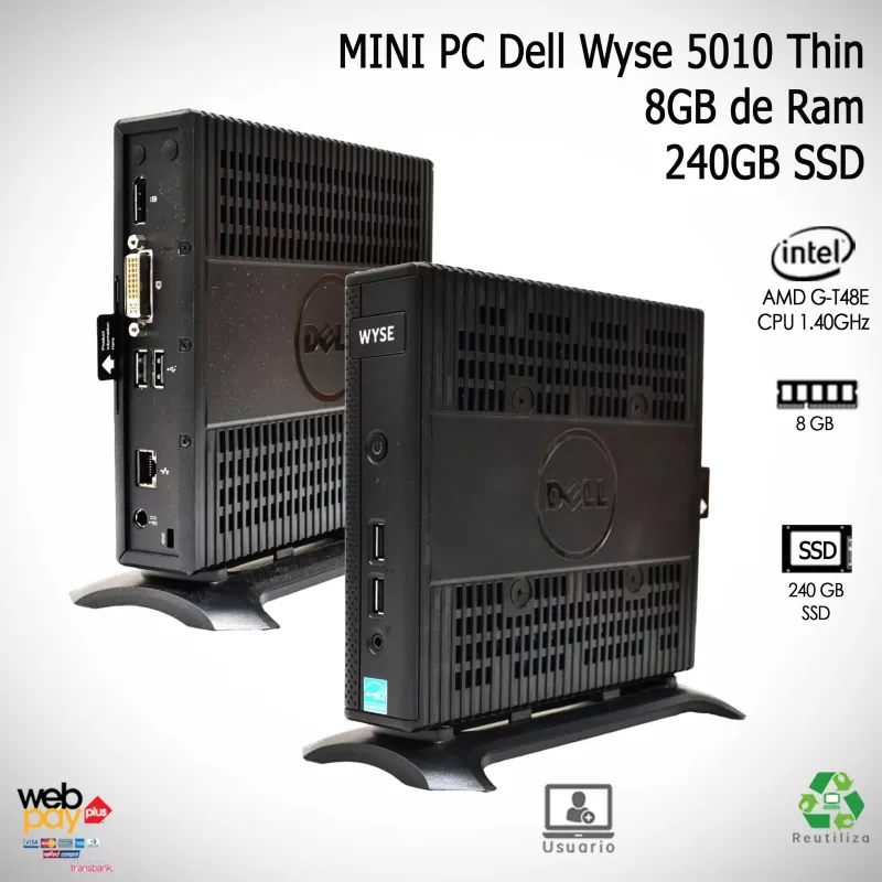 - Puertos Traseros: 4 x USB 3.0, 2 x USB 2.0, 2 x DisplayPort, 1 x VGA, 1 x RJ-45 (Ethernet), 1 x Conector de audio (entrada/salida)