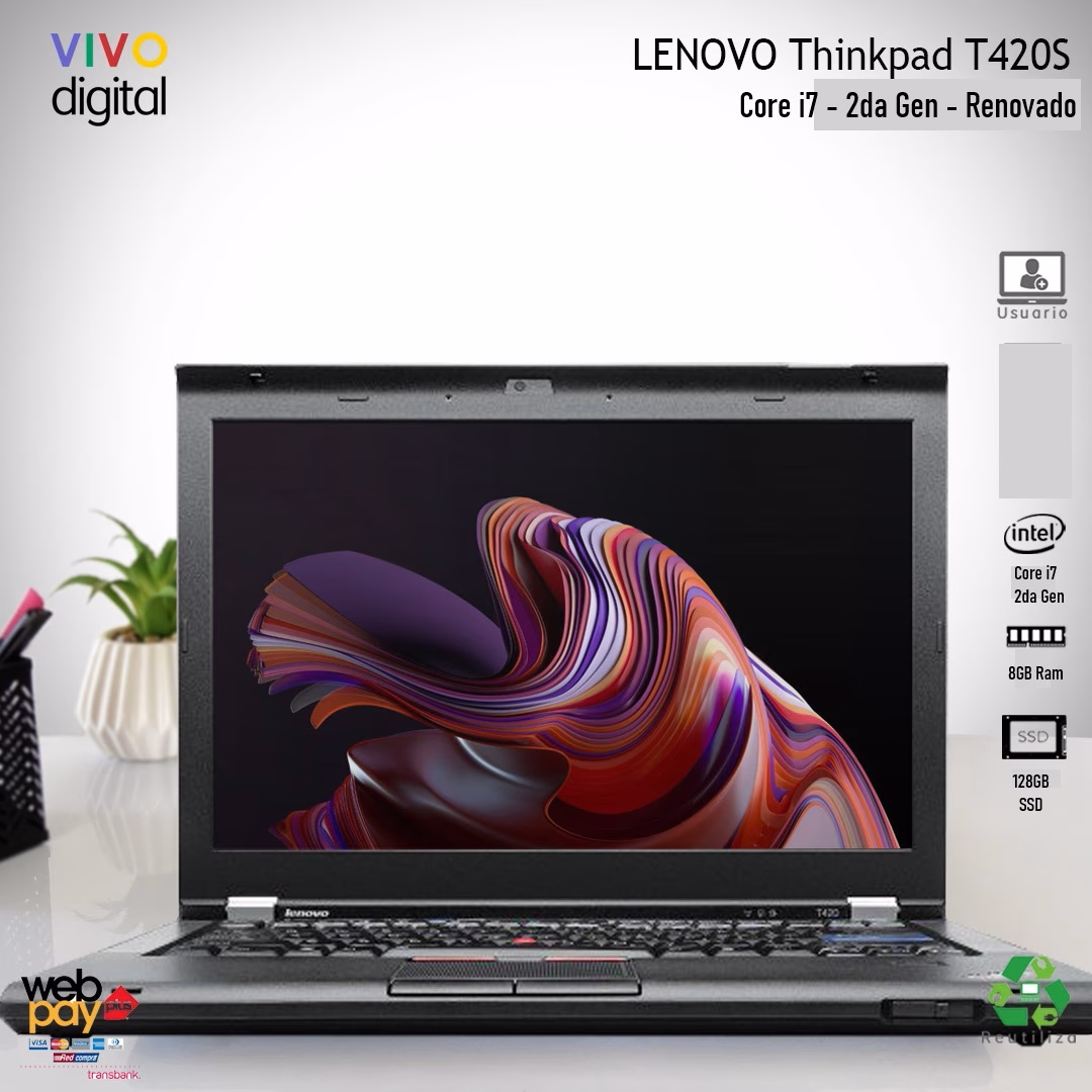 - Notebook Lenovo Thinkpad T420S | Core i7 2da Gen | 8GB Ram – 128GB SSD Alta Velocidad | Renovado