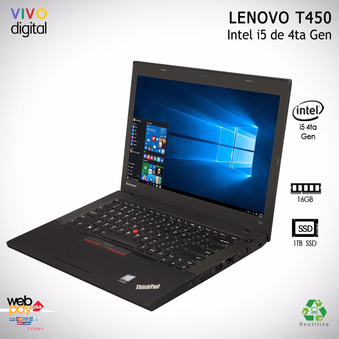 Notebook Lenovo ThinkPad T450 Re-acondicionado | I5 DE 4TA Gen | 1TB SSD | 16GB DE RAM Muy buenas condiciones