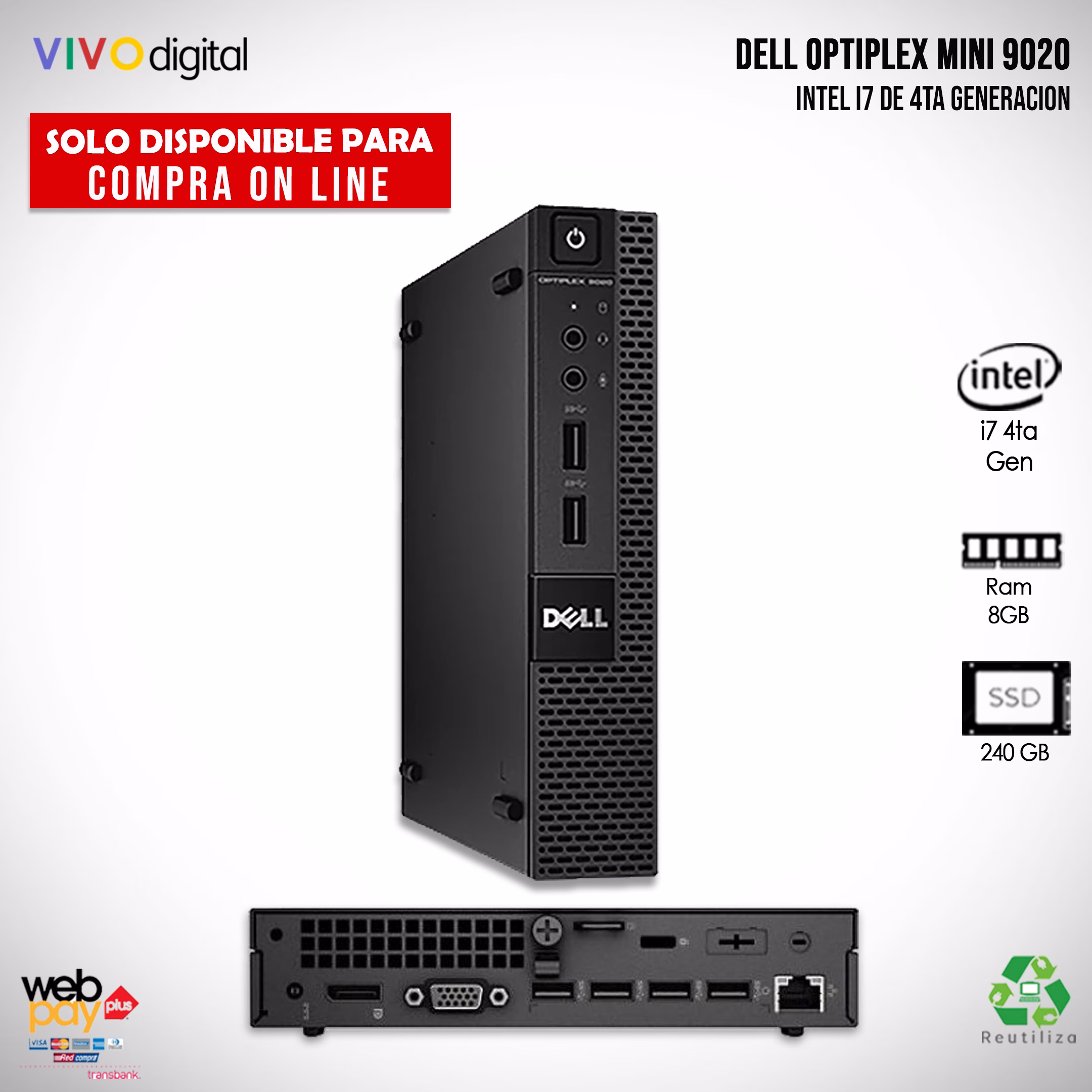 Pc Dell Optiplex 9020 | Intel® Core™ I7-4785T | RAM 8GB | 240 GB Disco SSD | Usado