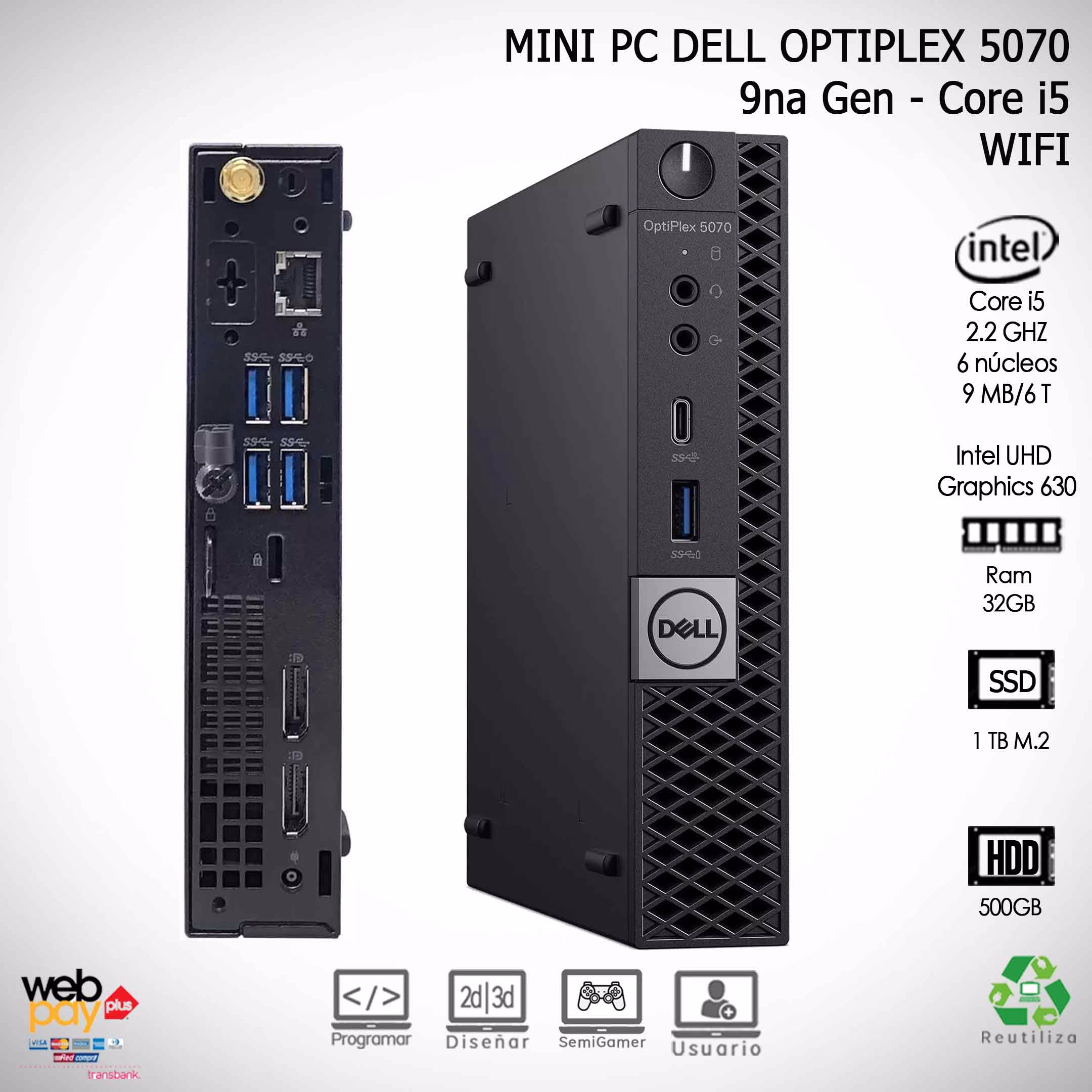 PC MINI DELL OPTIPLEX 5070 | RENOVADO Excelentes condiciones | Intel® Core™ I5-9500T de 9na Gen | 32GB de Ram | 1TB SSD + 500GB HDD | INCLUYE WIFI